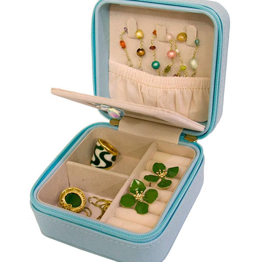 Porta-Joias e Bijuterias Portátil com divisórias e Espelho - Azul