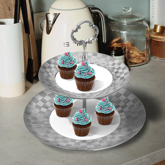 Prato duplo porcelana p/doces Vera silver 19/27x23cm