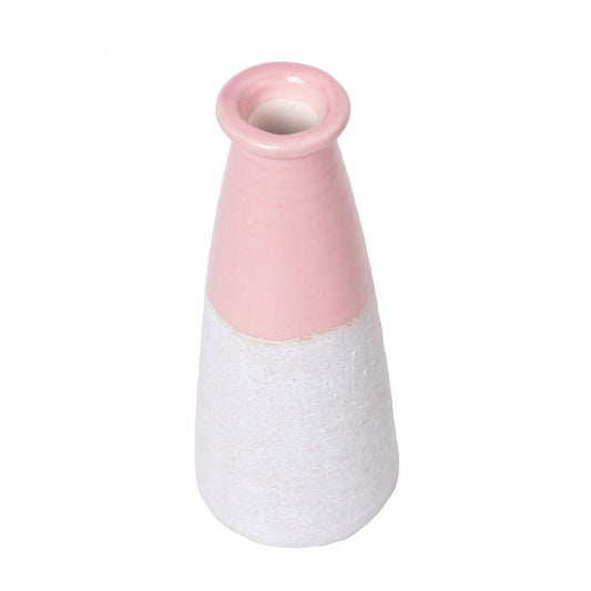 Vaso Decorativo em Porcelana cor Rosa e Branca 8 cm x 18 cm