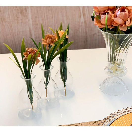 Vaso Decorativo de 3 Cálices em Vidro Transparente e Incolor de 18 cm x 6 cm x 11 cm