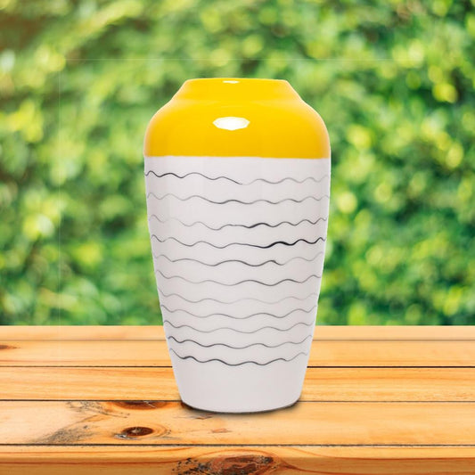 Vaso Decorativo de cerâmica branco/amarelo 16x28cm