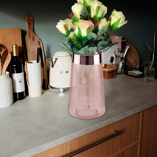 Vaso Ombré de Vidro Transparente em Degradê cor Coral 8 cm x 17 cm
