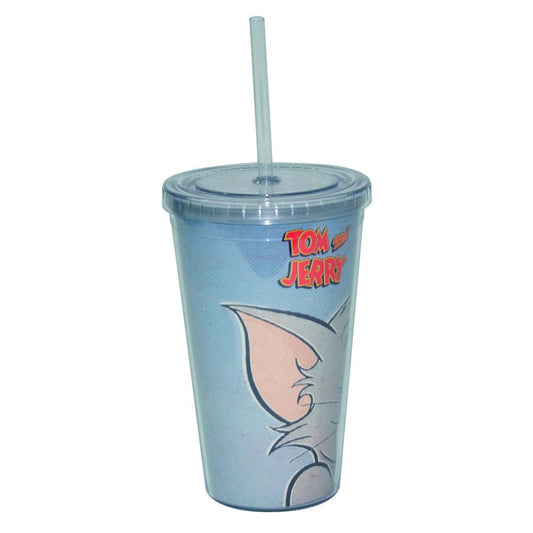 Copo Plástico Com Tampa E Canudo Hb Tom And Jerry Mad Face