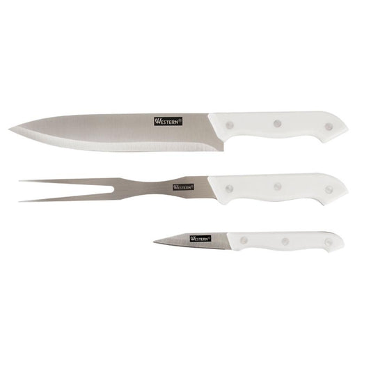 Facas e Garfo Trinchante Western 3 peças com Afiador de facas 21,7cm