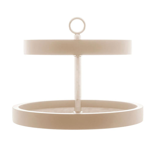 Fruteira madeira laqueado c/vidro 2 andares off-white 34x30cm