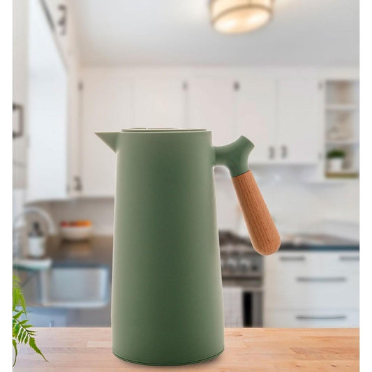 Garrafa térmica plástico c/cabo madeira Nórdica verde 1L
