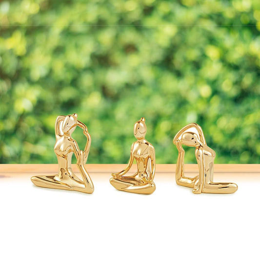 Kit Escultura yoga dourada em porcelana - 3 peças
