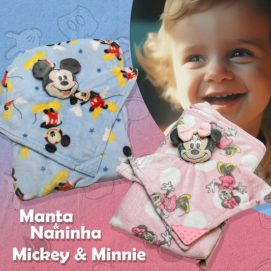 Kit Manta E Naninha Disney Baby Mickey Ou Minnie 75x90Cm Jolitex