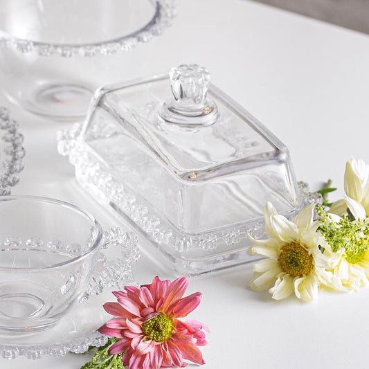 Manteigueira de cristal com tampa Pearl 17x10,5x10cm
