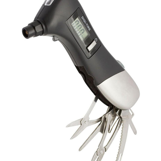 Medidor digital de pressão portátil para pneus com lanterna e multi-ferramentas