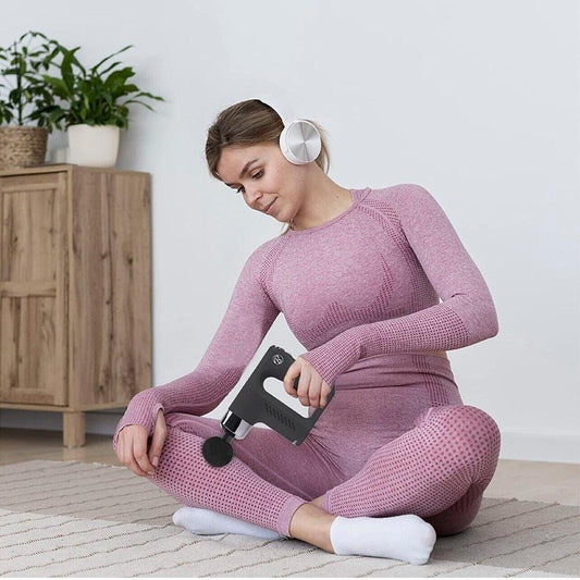 Massageador Portátil de Percussão Sem Fio Recarregável c/ 4 Cabeças Massageadoras