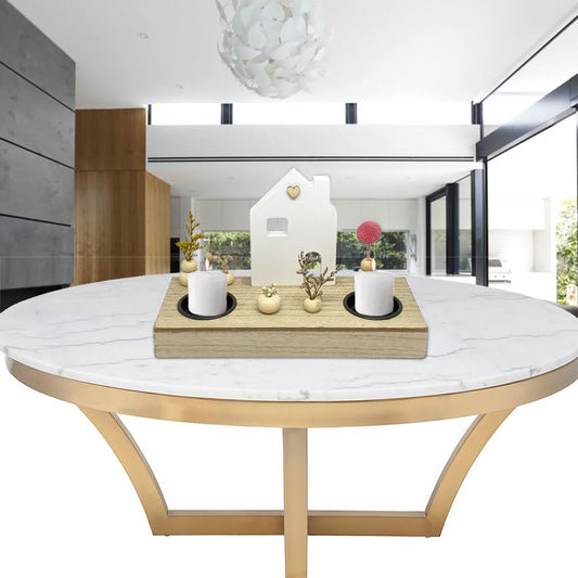 Peça Décor De Mesa Madeira Com Vasinhos, Flores E Suporte 2 Velas 20x12,5cm