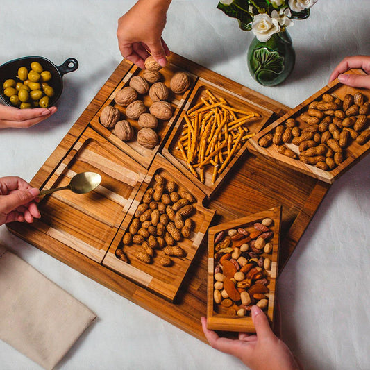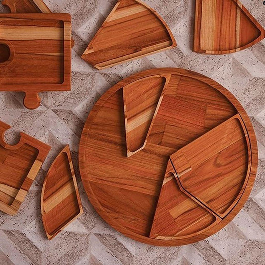 Petisqueira madeira teca c/6 divisórias 40x40x2cm