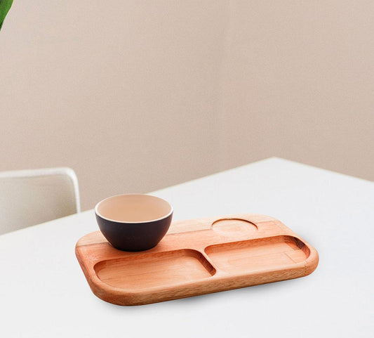Petisqueira madeira teca c/6 divisórias 33x2cm