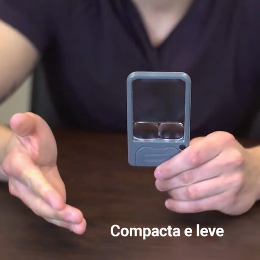 • Lupa com lente Extra grande de 12,7cm, luz LED Zoom de 1.5X