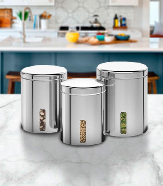 Conjunto Potes P/Mantimentos C/Tampa E Visor-3Pcs