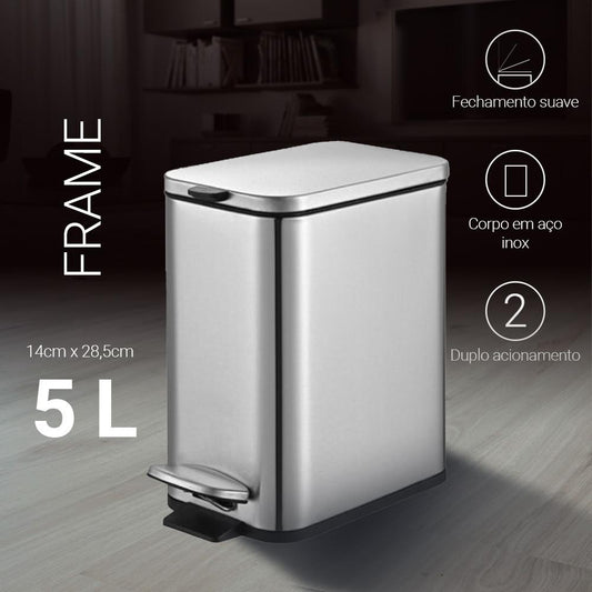Lixeira Retangular Pedal e Balde 5L Aço Inox Escovado Brinox