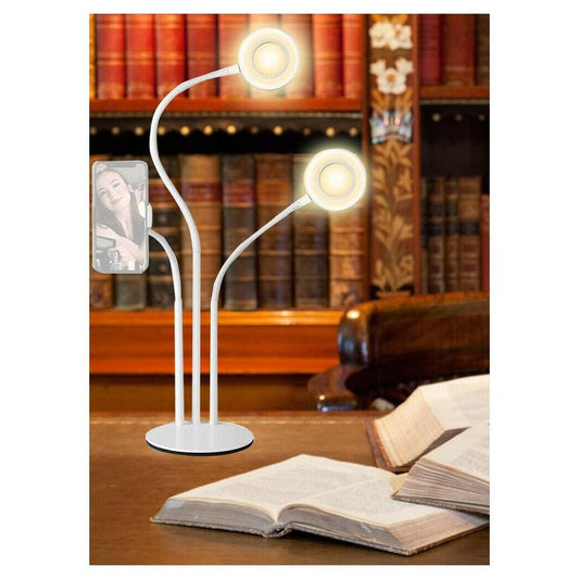 Luminária de mesa com 2 Ring Lights e Suporte para Smartphone