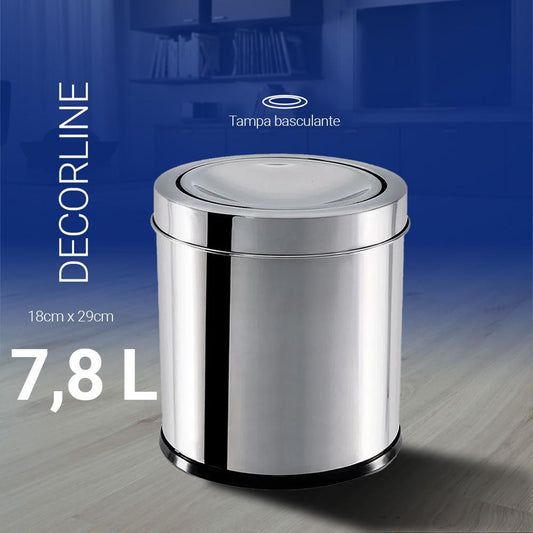 Lixeira Inox Tampa Basculante 7,8Litros Decorline