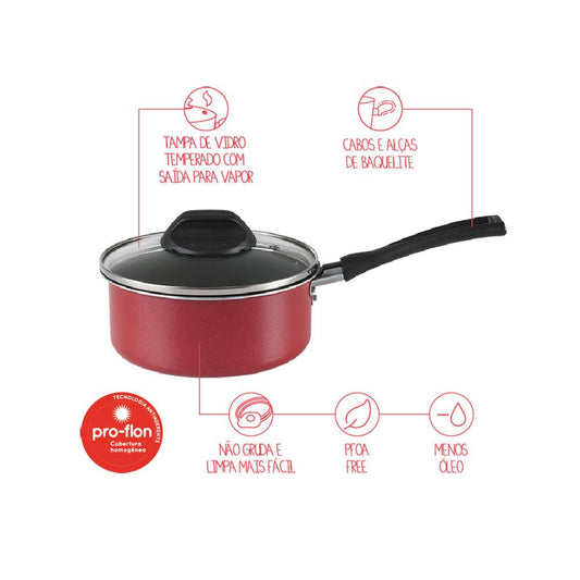 Panela com Tampa Brinox 18X8Cm 1,75L Garlic Vermelha