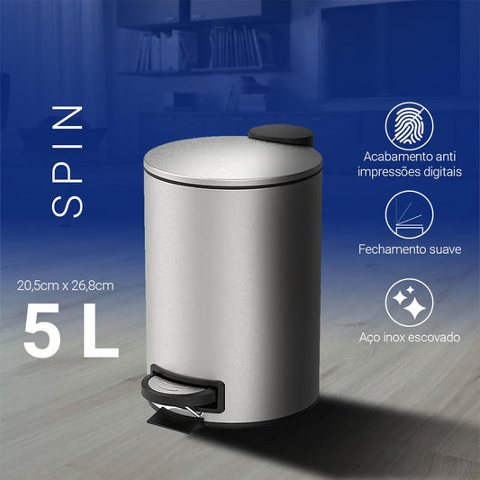 Lixeira Pedal e Balde 5L Aço Inox Escovado Spin Brinox