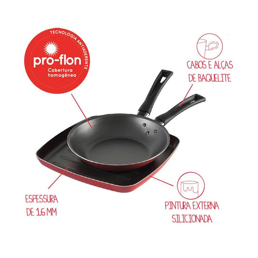 Conjunto Brinox 2 peças - Grill e Frigideira Garlic Vermelha