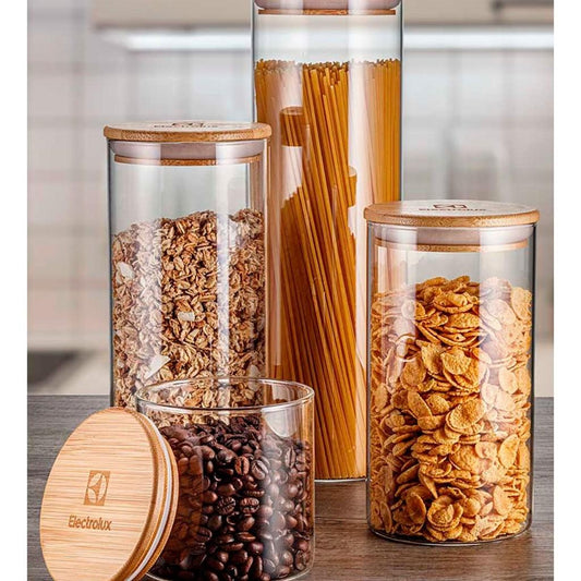 Potes Herméticos Porta-Mantimentos com Tampa de Bambu Electrolux - 4 unidades