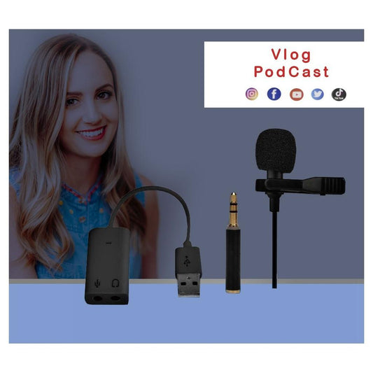 Microfone Vivitar Ultramini c/ clip para Smartphone e Adaptador USB p/ PC e Fone de Ouvido
