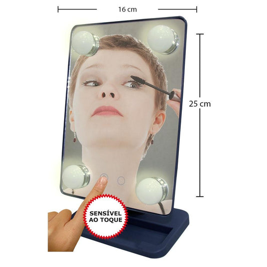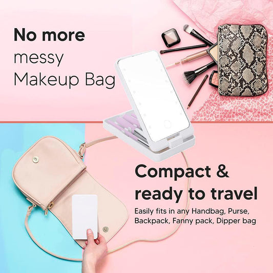 Espelho portátil Hollywood by Vivitar com 12 Leds e 5 pincéis para maquiagem